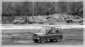…Скажем прямо: автомобильные гонки — не наш профиль. Тем более — гонки на выживание (слава Богу, не водителей, но потрепанных снаружи и заранее подготовленных изнутри легковушек разных моделей). И все же по настойчивому приглашению друзей, в праздник Победы посмотреть такое шоу стоит. Что мы и сделали 9 мая, отправившись на екатеринбургский стадион «Динамо» и взяв с собой фотоаппарат. Об увиденном судите по снимкам. Добавим лишь, что среди зрителей мы заметили по крайней мере одного уважаемого сотрудника УрО РАН. Как говорится, ничто человеческое… Впрочем, человек с древнеримских времен нуждался не только в хлебе, в том числе интеллектуальном, но и в зрелищах — с тех пор по сути мало что изменилось. С большим энтузиазмом наблюдали за гонками и ветераны Великой Отечественной, сумевшие выстоять на фронте (ветеранский уазик вы видите на фото внизу). В общем, урок науки выживать прошел по-своему содержательно.