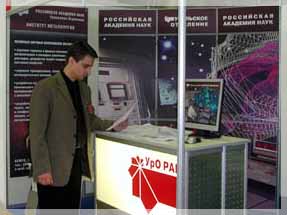 Это мероприятие состоялось при поддержке Министерства промышленности, энергетики и науки Свердловской области, администрации Екатеринбурга, Международного союза металлургов, Союза предприятий и организаций химической промышленности Свердловской области. Крупнейшие российские производственные компании, такие как Верхнесалдинское металлургическое ПО, предприятия Уральской горно-металлургической компании, Каменск-Уральский металлургический завод, «Самараэлектромаш», Уральская химическая компания, «Теккноу» и «РВС» из Санкт-Петербурга, «Пента» из Москвы, украинский «Новокузнецкий машиностроительный завод» и другие заводы и научно-производственные объединения, а так же Уральское отделение РАН представили современные достижения в области науки и промышленности: сырье и материалы, технику, оборудование, приборы и инструменты, программное обеспечение, научно-технические разработки. Экспозиция Уральского отделения РАН была представлена образцами продукции, разработок, технологий институтов металлургии, химии твердого тела, органического синтеза, высокотемпературной электрохимии, машиноведения, физики металлов. Доклады ведущих ученых УрО РАН на состоявшейся в рамках выставки научно-практической конференции «Химия и металлургия: научно-технические разработки для промышленного производства» вызвали большой интерес ее участников. На выставке дебютировал новый стенд УрО РАН: принципиально новое дизайнерское решение, мобильные, компактные, легкие, сборно-разборные ширма и тумба с подсветкой, СD-презентация. На каждый институт — один большой плакат, где перечислены основные направления исследований, более подробную информацию можно найти на жидкокристаллическом мониторе. Начальник отдела выставок УрО РАН Вахтанг Вахтангович Джибладзе считает очень важным современный подход к презентабельности учреждений УрО РАН. Нельзя демонстрировать последние достижения науки на «допотопных» планшетах. Ни для кого не секрет, что «встречают по одежке», поэтому «визуальная» и «содержательная» части должны гармонировать. Теперь нам за «одежку» не стыдно. Броская, чтобы привлечь внимание посетителей выставки, ширма несет имиджевое начало. Смысл узкоспециализированных плакатов институтов не в том, чтобы расписать все разработки, а компактно дать информацию о том, чем институт занимается. Тут же образцы готовой продукции, новых материалов, которые можно потрогать руками. Народ подходит, интересуется, в основном это специалисты, как и предполагают такого рода экспозиции. По словам Вахтанга Вахтанговича, все институты подошли к организации выставки очень ответственно, помогли наполнить экспозицию содержанием, информацией. Особо он отметил Институт металлургии и Институт органического синтеза. О разработках Института органического синтеза мне рассказали две симпатичные девушки — Надежда Леонидовна Ициксон, кандидат химических наук, научный сотрудник лаборатории гетероциклических соединений и Анна Юрьевна Пономарева, аспирант этой же лаборатории: — Здесь представлены работы в области синтеза лекарственных препаратов. На научно-практической конференции заведующий лабораторией, доктор химических наук В.П. Краснов рассказывал об оригинальном отечественном противоопухолевом препарате лизомустин. Сейчас произ