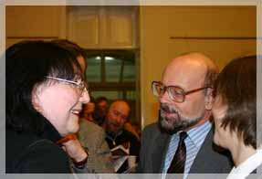 10 декабря в екатеринбургском Доме ученых состоялось долгожданное — в прямом и переносном смысле — торжественное открытие сезона 2004–2005 гг. Оно вместило в себя целый ряд приятных сюрпризов. Во-первых, главным «виновником торжества» стал сам зал Дома ученых. Отреставрированный впервые за свою более чем столетнюю историю, он стал не только светлее — кажется, даже выше и шире. Во-вторых, состоялась презентация обновленного сайта Дома ученых. Теперь он не только обладает полноценным доменным именем третьего уровня dom.uran.ru, но и стал значительно содержательнее. Помимо информации о любительских объединениях ученых УрО РАН и структуре Дома, появились очерки об истории самого здания и о его бывших владельцах — чете Железновых. Значительно расширены информационные разделы. К примеру, теперь, если вам по какой-то причине не доставили свежую афишу, вы можете самостоятельно скачать ее с сайта и распечатать. Или просто заглянуть и узнать — что у нас в ближайшую пятницу? Конечно, пока еще не все страницы «доведены до ума», но создатели сайта и работники Дома обещают не оставлять его своими заботами. В-третьих, был подробно проанонсирован предстоящий сезон. Директор ДУ Евгений Тулисов представил программу мероприятий и поздравил собравшихся с завершением реставрации зала — он стал светлее и уютней. Сотрудники Ольга Артемова рассказала о клубной и экскурсионной работе, Юлия Нестерова — о программе этнокультурного центра «Многая лета» и представила поделки клуба членов «Берегиня» (традиционные обереги, пояса, куклы — см. фото), куратор творческих проектов екатеринбургского филиала ГЦСИ Анастасия Чичильницкая презентовала программу работы клуба любителей современного искусства «Вкл./Выкл.», который в нынешнем сезоне будет работать на площадке Дома ученых.