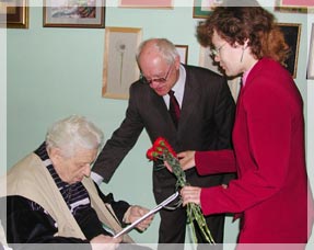 К встрече с ветеранами войны и труда в Институте высокотемпературной электрохимии УрО РАН подготовились основательно. Оформили стенд с фотографиями и краткой биографией всех работавших в институте ветеранов, организовали выставку картин, вышитых тоже ветераном института Натальей Ароновной Красильниковой, и даже сняли о них фильм. Директор института Владимир Антонович Хохлов тепло поприветствовал собравшихся и рассказал им о том, как живет институт, о достижениях и планах на будущее. По словам Владимира Антоновича, сотрудники ИВТЭХ постоянно ощущают заинтересованность своих ветеранов во всем, что делается в институте, и всегда рады «видеть их родные лица».