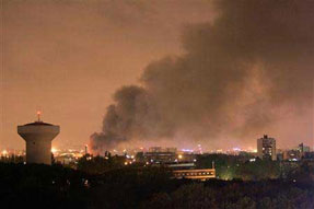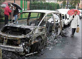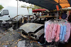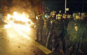 пылающими автомобилями в парижских предместьях и сотнями разбушевавшихся