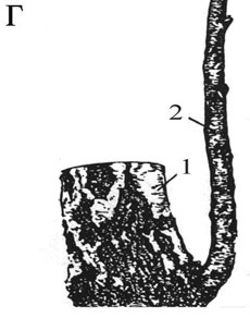 дерево (рис. 2в). В отличие от порослевин, сформированных от пня срубленного