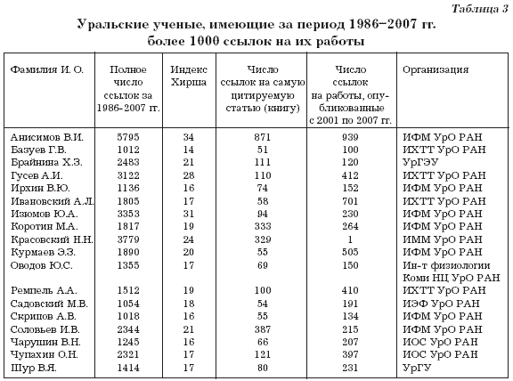 процитированы более 1000 раз с 1986 по 2007 г. (в таблице учтено цитирование